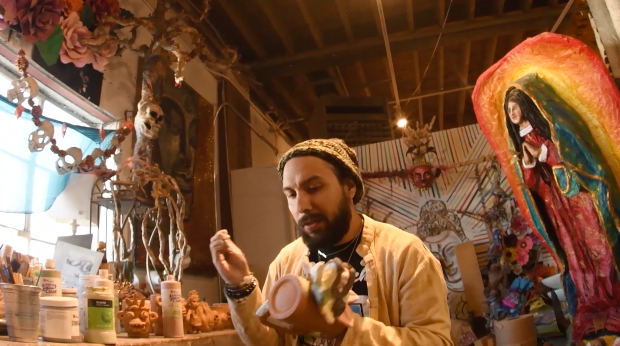 Example Student Work: In his 2022 documentary, It’s based off Day of the Dead, right? (above), multimedia artist Jamie Chihuan explores his own identity and practice through diaristic storytelling and interviews with Latinx artists in Metro Denver, Colorado.