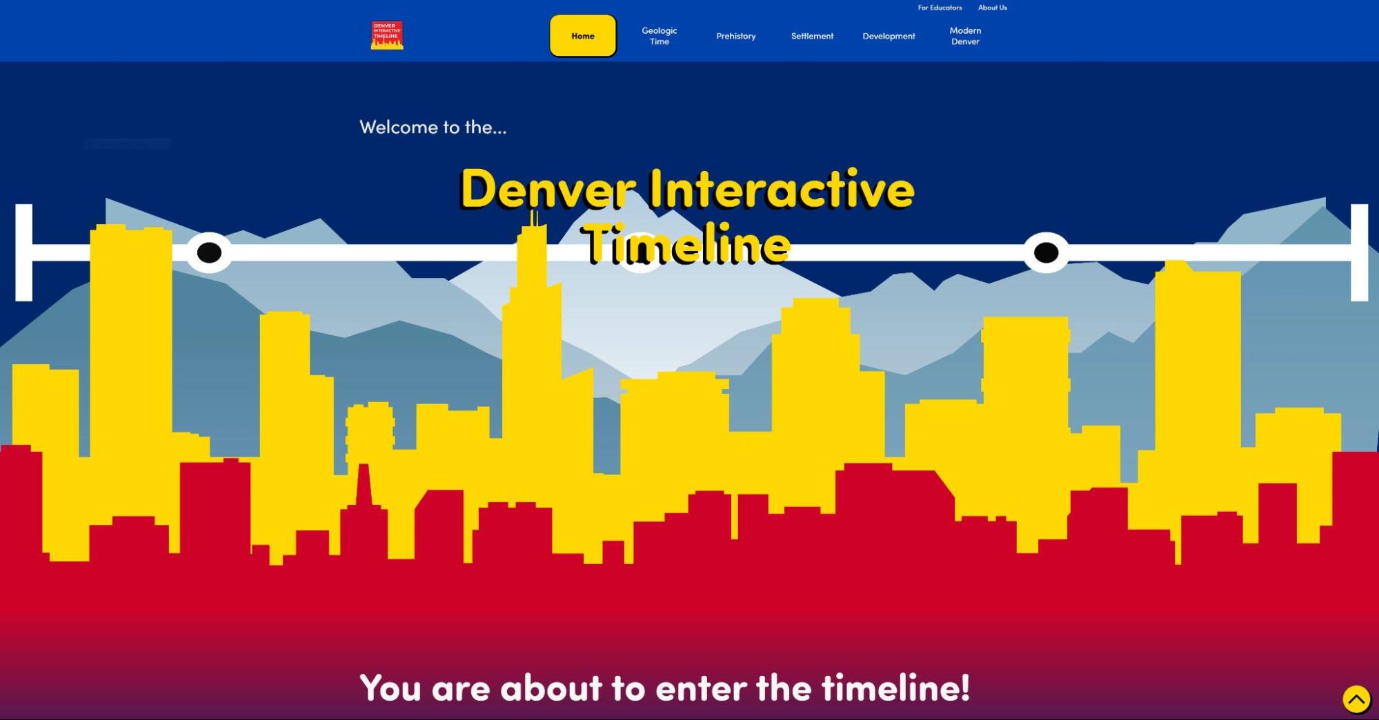 Example Student Work: An interdisciplinary team of students came together (Media Production, Geology, Strategic Communications, Journalism) to develop a public-facing project, they turned their attention towards the needs of students and teachers in the area for localized educational resources. The multimedia resource Denver Interactive Timeline was created in conversation with Denver-area teachers to develop a deployable, age-appropriate, and standards-oriented history of Denver from its geological past to present day.